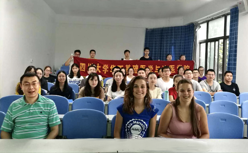 7月9日上午9:00,永利官网2018国际课程周交流营在华西基础逸夫楼北教室开幕,教学副院长梁伟波教授出席了开幕式。来自法国艾克斯-马赛大学两名留学在现场与永利官网学生展开了交流互动。