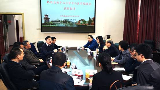 3月27日上午8点30分,中山大学中山医学院党委书记吴忠道教授一行八人来永利官网访问并就党建、师资队伍建设、人才培养等工作进行调研。学院党委书记李昌龙教授,院长黄灿华教授,郭晓伟副书记,副院长方定志教授,教授委员会主席刘肖珩教授及相关老师出席座谈会,座谈会在华西第五教学楼会议室举行。