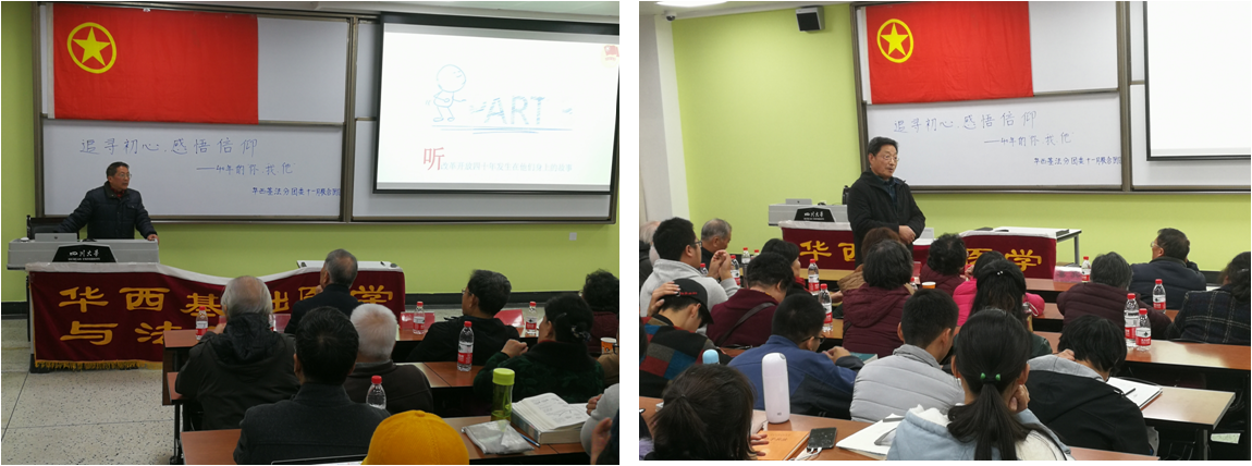 校关工委秦自明老师、院关工委曾志源和贾文祥老师结合自身工作、学习和生活经历分别做了分享交流,畅谈改革开放带来的巨大变化。秦自明老师表示,改革开放为学校的发展带来重大机遇。他以量子化学学科发展、实验设备仪器不断精进以及学生生活条件的不断改善等“小变化”为例,说明改革开放带来的“大变化”。他表示,同学们今天应当感到幸福和骄傲,应为承担历史使命而努力,成为优秀的社会主义事业接班人。曾志源老师表示,她从共青团员成长为共产党员和人民教师,一直以来政治立场明确,不忘初心,所以在改革开放的大潮中,才能沿着正确的道路一直前行,并深受其益。她强调,作为共青团员,将个人理想与祖国发展相融合,要积极向党组织靠拢,处处起模范带头作用。贾文祥老师阐述了学院的发展历史,他表示,正是由于一代代先辈们的不断努力,为学院的发展奠定了坚实的基础。如今学院正在不断改革体制机制,开创了“华西坝院士大讲堂”等高端学术平台,引进国内外知名学术专家前来讲学,为同学们带来了获取前沿知识的重要机遇。同学们应抓住机遇,利用好的平台,在新时代取得更大的发展。