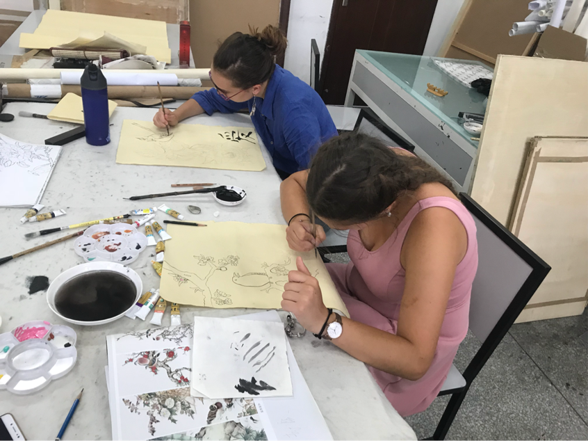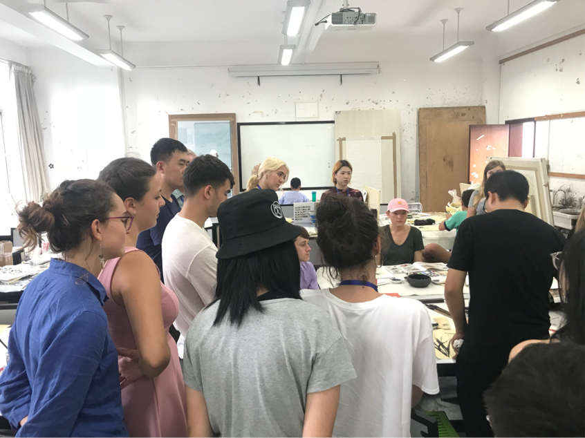 7月12日下午2:30,国际课程周的留学生和永利官网十几名学生共同参加了永利官网和艺术学院在江安校区共同举办的第二堂中华传统艺术体验课——国画。