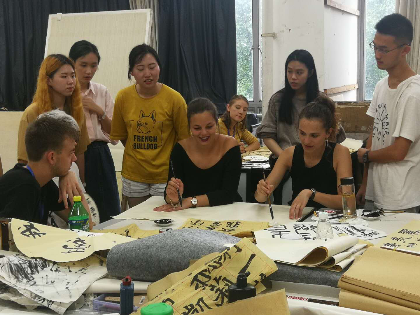 7月10日下午2:30,国际课程周的留学生和永利官网十几名学生一起参加了永利官网和艺术学院在江安校区共同举办的中华传统艺术体验课——书法。