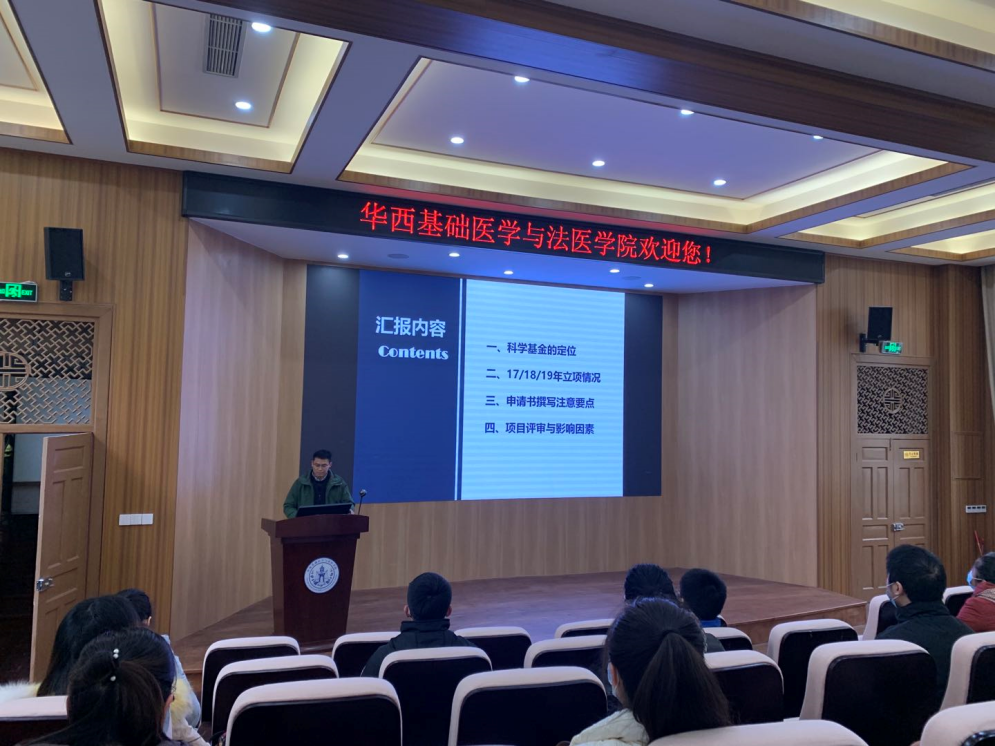 2021年1月8日上午10点,电子科技大学刘贻尧教授和中国药科大学王琛教授相继在华西五教报告厅为全院师生分享了他们对国家自然科学基金申报的经验和心得。两位教授的讲解深入浅出,让老师同学们收获良多。