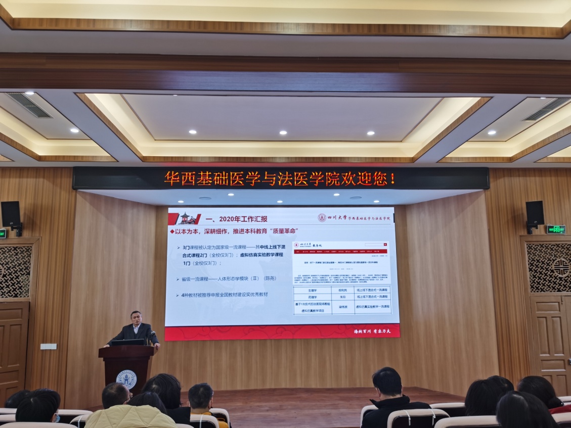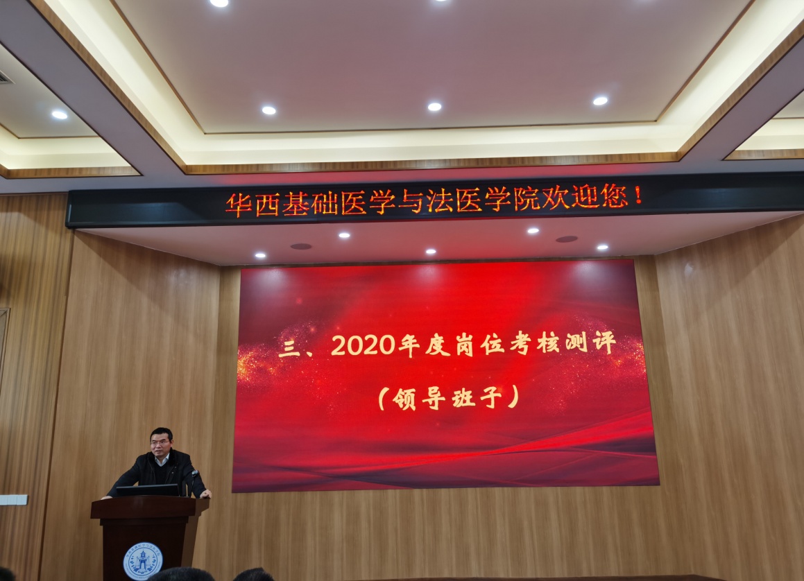 2020年12月31日下午,永利3544am登录官网华西基础医学永利3544am登录官网在华西第五教学楼报告厅召开2020年度领导班子及班子成员年度岗位考核测评会,学院领导班子、全院教职工参加了此次大会,会议由学院党委副书记郭晓伟主持。
