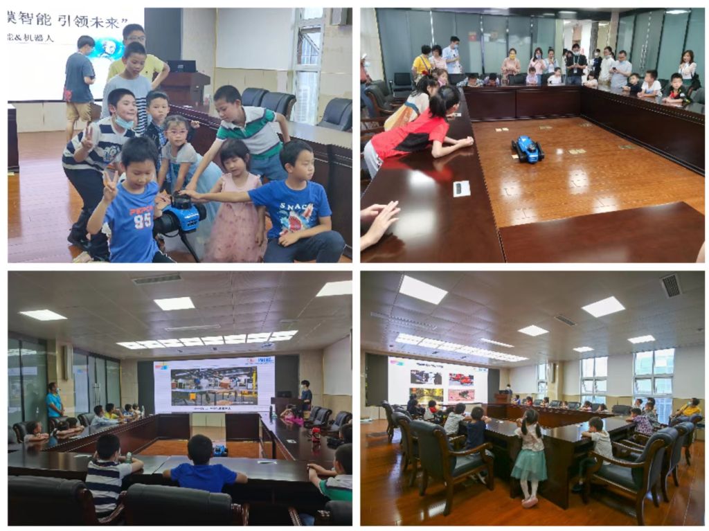 “智能机器狗活动”在五楼能源互联网实验室开展。电气工程学院研究生同学为小朋友讲解了智能机器人的概念、目前国内外的发展趋势和应用示例,还进行了智能机器狗Mini的现场表演。智能机器狗的每一次动作,无论是快速行走、跳跃和原地翻滚都引起了小朋友们的阵阵喝彩。孩子们还亲身体验操控机器狗,感受人工智能的魅力。