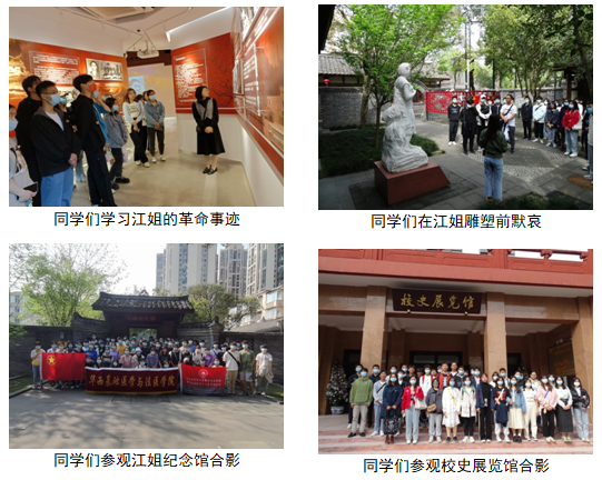 为引导广大青年学生坚定理想信念,增进家国情怀,传承红色基因,弘扬民族精神和时代精神,在中华民族传统节日清明节来临之际,永利官网于3月18日至4月1日,举行2022年“学习革命先辈崇高精神,争做又红又专时代新人”清明祭英烈主题教育活动,组织学生前往校史馆、江姐纪念馆、毛英才烈士塑像以及人民公园保路死事纪念碑参观学习,开展祭扫活动。