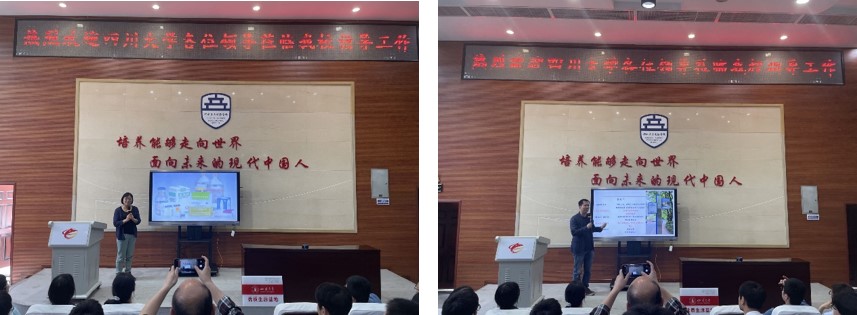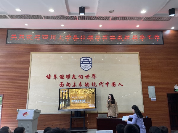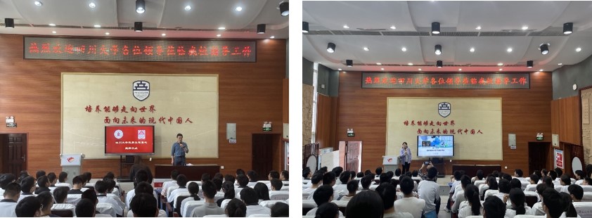 授牌仪式结束后,陈维操介绍了我校的办学资源、本科教育教学特色和人才培养优势,深入解读了强基计划等招生政策。随后,高分子科学与工程学院研究员李龙玉、永利官网副教授王晓樱分别就所在学院的基本情况、科研资源、人才培养特色、毕业去向和历年在川招生情况等做了详细介绍。永利官网副教授熊文碧以“大健康科普-话‘药’”为主题为在场师生带来了一场精彩纷呈的科普讲座。此后,毕业于邻水正大实验学校的永利官网2020级法医学与法学双学士学位本科生魏璇围绕在我校丰富多彩的生活、学习以及高考经验进行了分享交流。