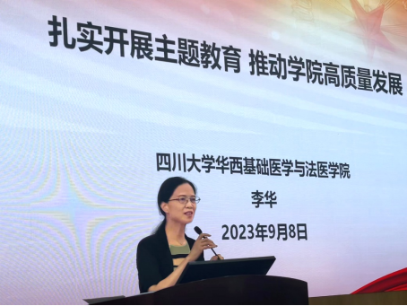 随后,学院党委书记李华同志作了题为《扎实开展主题教育 推动学院高质量发展》的主题教育总结。她表示自主题教育开展以来,在学校主题教育第三指导组的精心指导下,学院党委牢牢把握“学思想、强党性、重实践、建新功”的总要求,坚持“学思用贯通、知信行统一”,提升“四个认同”,做好“三个统一”。从突出“谋”字,多方动员,凝聚共识;突出“深”字,理论学习,入心入脑;突出“准”字,立足发展,领题调研;突出“实” 字,深入调研,走深走实;突出“干”字,多方合力,共促发展;突出“严”字,检视整改,有力有效;突出“常”字,建章立制,常态长效;突出“领” 字,组织领导,强化宣传等这八个方面扎实有效的开展了主题教育,其中在检视整改部分,李华同志还通报了学院主题教育专题民主生活会的开展情况,并对全院教职工进行了师德师风警示教育,要求全体教职工以案为戒,守牢底线。最后,汇报了在主题教育期间,学院在人才队伍建设、对外宣传合作、科学研究、学科建设、人才培养等方面取得的显著成效,并对2023年下半年新学期党建工作进行了部署,希望全院教职工狠抓落实,实现党建与事业高质量融合发展再上新台阶。