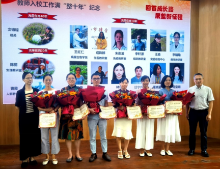 回首成长路,展望新征程。大会表彰了入校工作满“整十年”的教师,李华同志宣读名单,李昌龙同志为受表彰的老师们颁发证书,送上鲜花,感谢他们为学院发展做出的贡献。