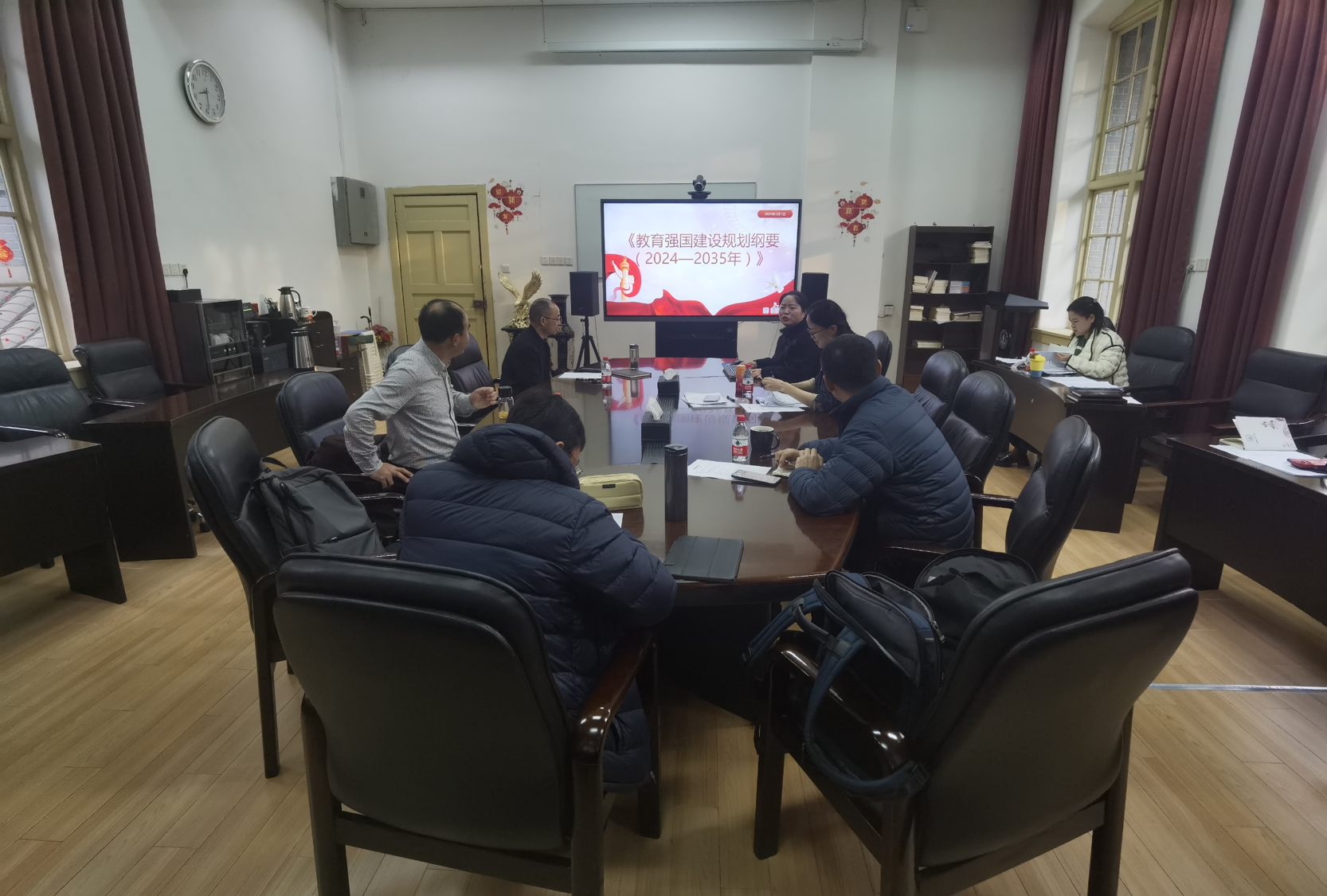 会上,在前期自学的基础上,由党委委员陈达丽同志领学《纲要》,带领大家系统学习了《纲要》的背景意义、重点要点,并结合学习视频解读了《纲要》部署的9个方面和具体落实举措。强调《纲要》是深入贯彻党的二十大关于加快建设教育强国的战略部署的纲领性文件,意义重大。我们要深入学习贯彻《纲要》,坚持教育优先发展,全面贯彻党的教育方针,为建设社会主义现代化强国、全面推进中华民族伟大复兴提供有力支撑。