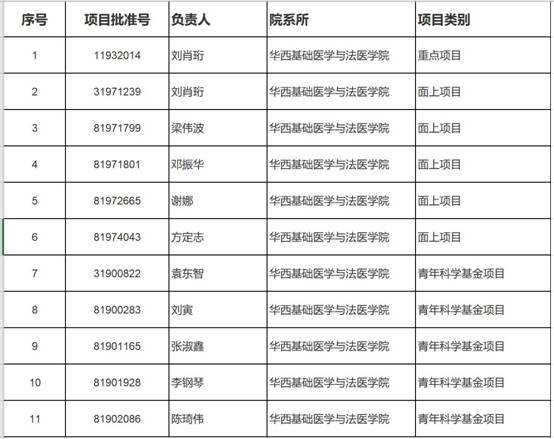 华西基础医学永利3544am登录官网获批2019年国家自然科学基金名单