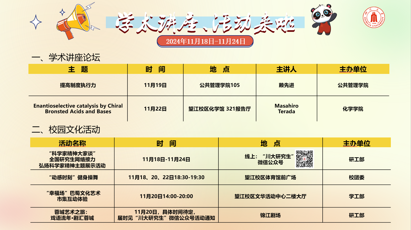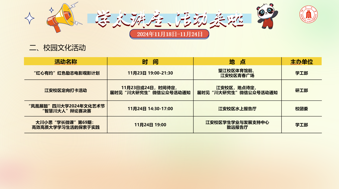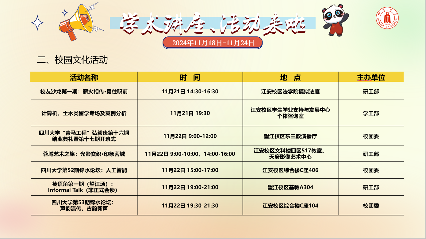 永利3544am登录官网2024年11月18日-11月24日学术讲座论坛及校园文化活动预告