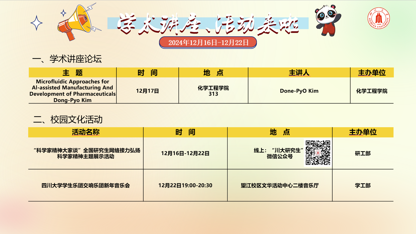 永利3544am登录官网2024年12月16日-12月22日学术讲座论坛及校园文化活动预告