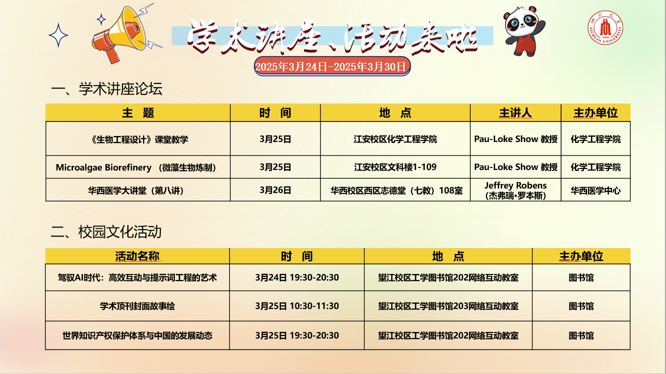 校内学术讲座论坛及校园文化活动预告(二)