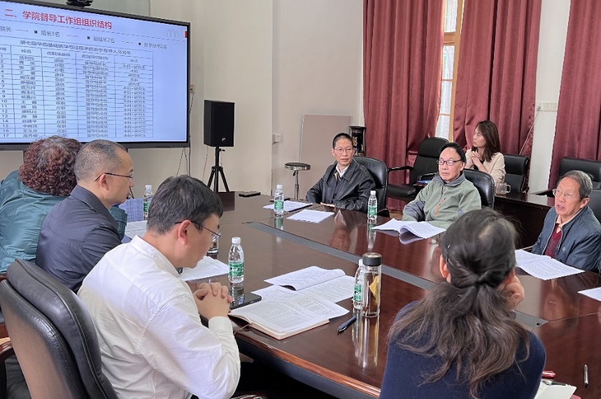 上一届督导组组长贾文祥教授总结工作。他指出,回顾过去,学院教学督导组从吕广能教授开始,走过了十多年不平凡的路。退休督导始终保持振兴学院教育事业的初心,因热爱教育事业、心系学院发展而聚集到一起。教学督导工作相当重要,但很繁杂,督导组长期往返于华西校区、望江校区和江安校区,在巡教、巡考、档案检查等工作中认真履职,尽职尽责。近年来,督导组还针对中青年(特别是青年)教师讲课和小班化教学指导,课后与老师们在教室进行了及时交流,教师教学水平提升效果显著。在学院领导的大力支持、教研室主任、教学秘书及全体老师的积极配合下,督导组的各项教学检查、教学督导、质量闭环等工作顺利开展,学院教育事业得到了有目共睹的发展。新一届教学督导组补充了很多年富力强、经验丰富的新鲜血液,以岳利民教授任组长的第七届院督导组将在学院的高度重视和大力支持下做出更多独具特色的工作。