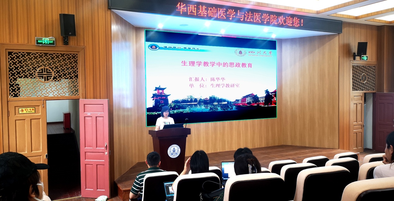 陈华华老师以“生理学教学中的思政教育”为题,介绍了生理学教学中进行课程思政教育的方法。她提出,每一章节的生理学学科知识都可以与中外科学家的优秀事迹相结合,比如在讲血压的时候引入复旦大学钟杨教授的事迹,讲述他的“科研心、教育梦、民族情”;可以在讲失血对机体的影响时,引导学生进行无偿献血,讲述永利官网黄英老师20余年的献血史……这些都可以自然而然地培养学生的爱国主义精神、科学创新精神、无私奉献精神和人文精神,树立以人为本的人文精神,传播身边的正能量。