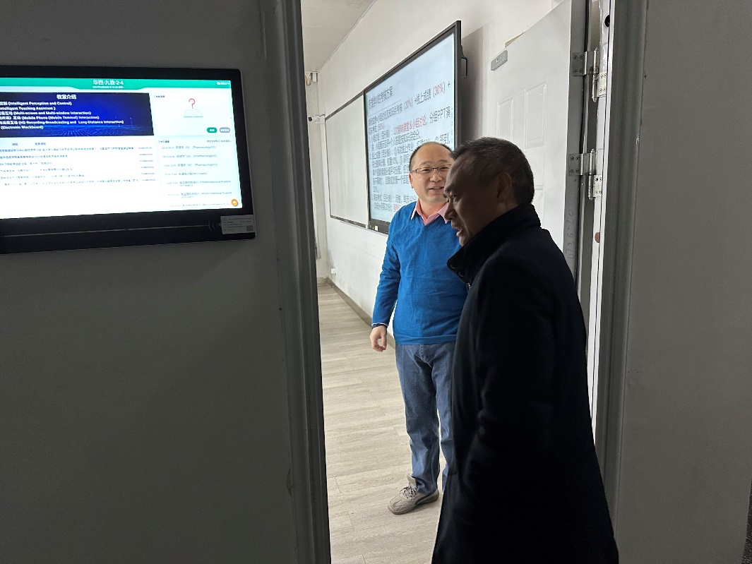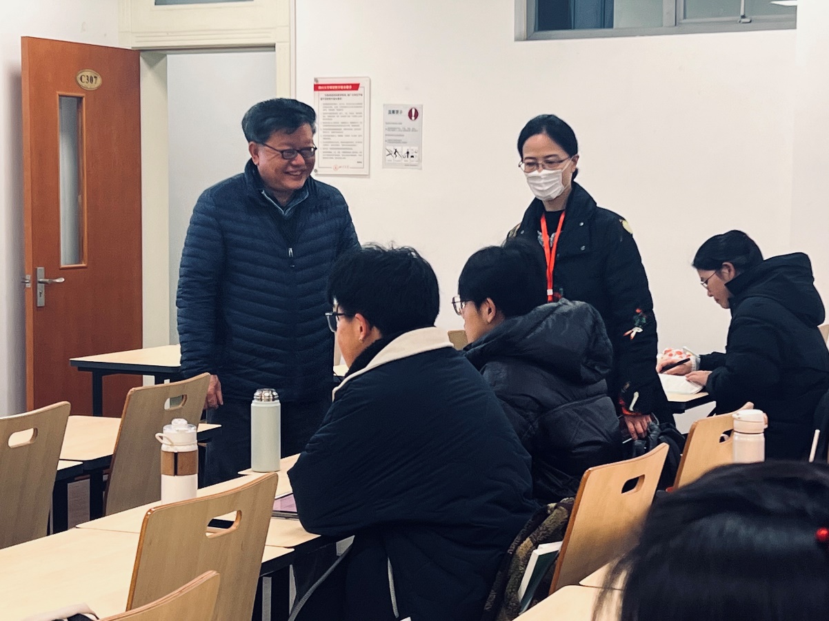 永利官网李华书记和主管教学的梁伟波副院长到江安校区,亲临本科教学课堂与授课老师及上课同学亲切交流,深入了解教学一线的实际情况,对任课老师到岗情况、学生到课情况、教学运行等情况进行了巡查。