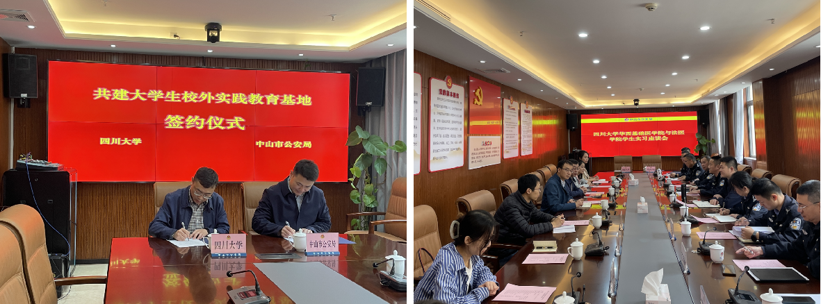 为进一步了解法医学专业学生的实习情况,加强永利官网与实习基地的联系和沟通,3月15日,永利官网副院长梁伟波教授、副院长罗海玻教授带领法医毒物分析教研室主任叶懿副教授、法医物证教研室主任宋凤副教授及教学科相关人员,前往中山市公安局刑事警察支队举行大学生校外实践教育基地签约仪式,并开展实习调研。中山市公安局党委委员、政治处主任弓伟,政治处副主任王多,政治处人事科科长李世杰,刑警支队支队长朱少勇,刑警支队政委李慧明等人出席调研会议。