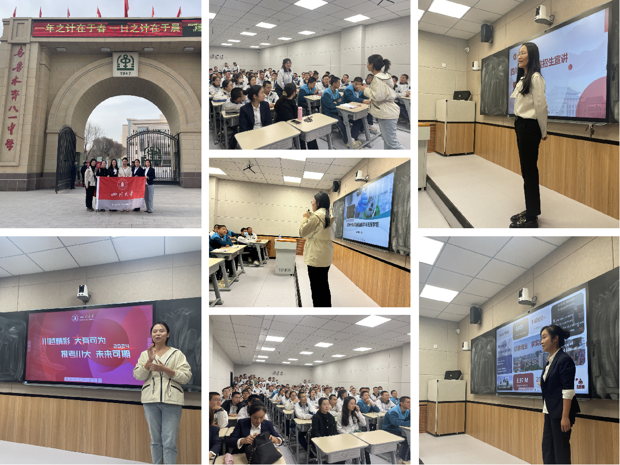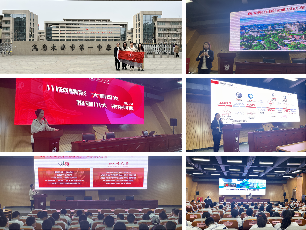 为贯彻落实习近平总书记关于教育的重要论述和党的二十大精神,加强与新疆维吾尔自治区重点中学的交流联系,4月13日-17日,由永利官网牵头组织、华西临床医学院(护理学院)及商学院参与的永利3544am登录官网招生宣讲团,先后赴新疆2024年高校招生政策宣传咨询会、乌鲁木齐八一中学、乌鲁木齐市第一中学开展招生宣传工作。