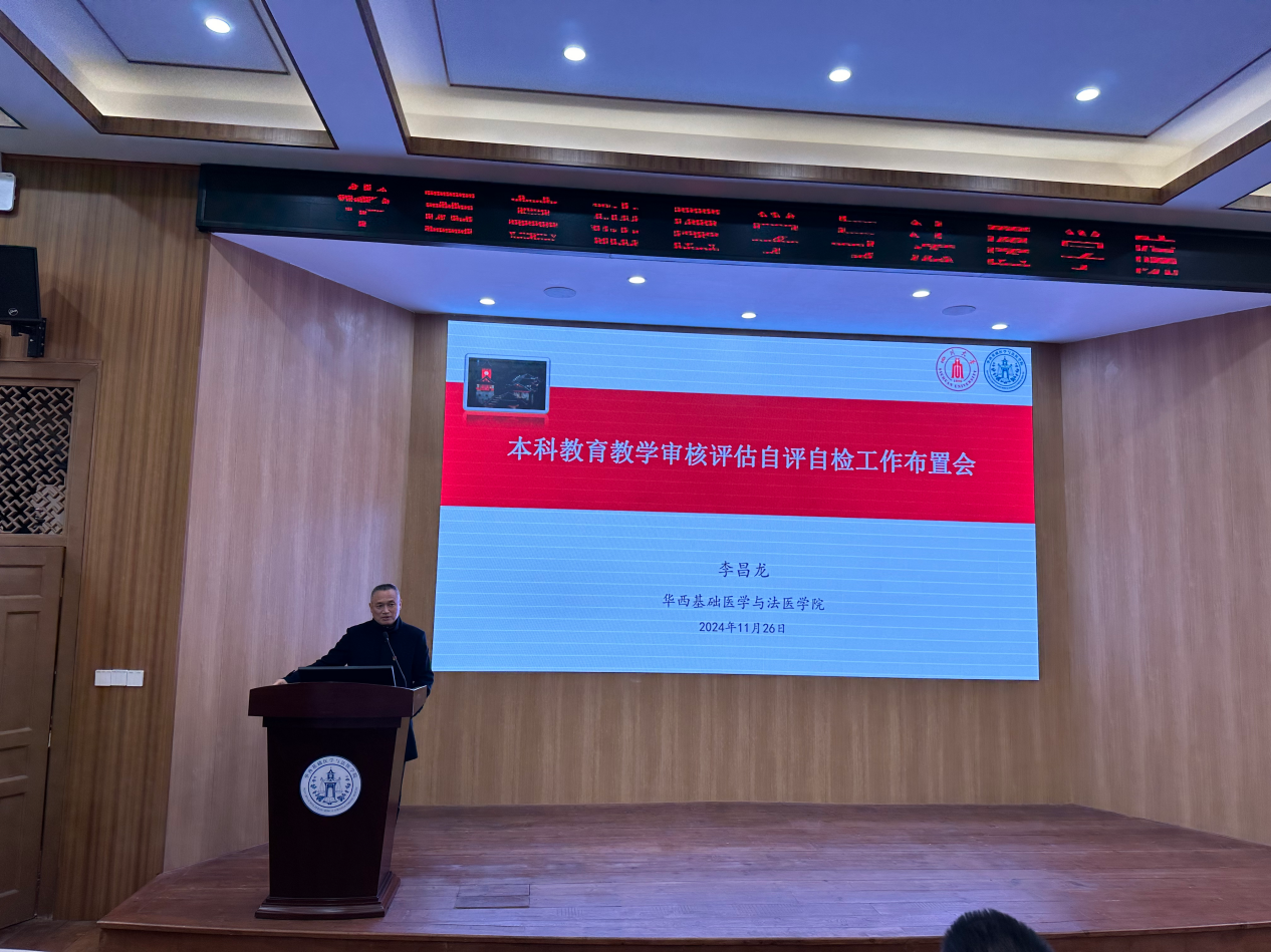 为进一步推进新一轮审核评估责任落地,共同把审核工作做好、做实、做精、做细,11月26日下午3点,永利官网在华西第五教学楼报告厅召开本科教育教学审核评估自评自检工作布置会,院长李昌龙、党委副书记兼副院长罗海玻、副院长张舒羽出席了会议,全院无课教师参加了会议,会议由教学科科长肖世维主持。