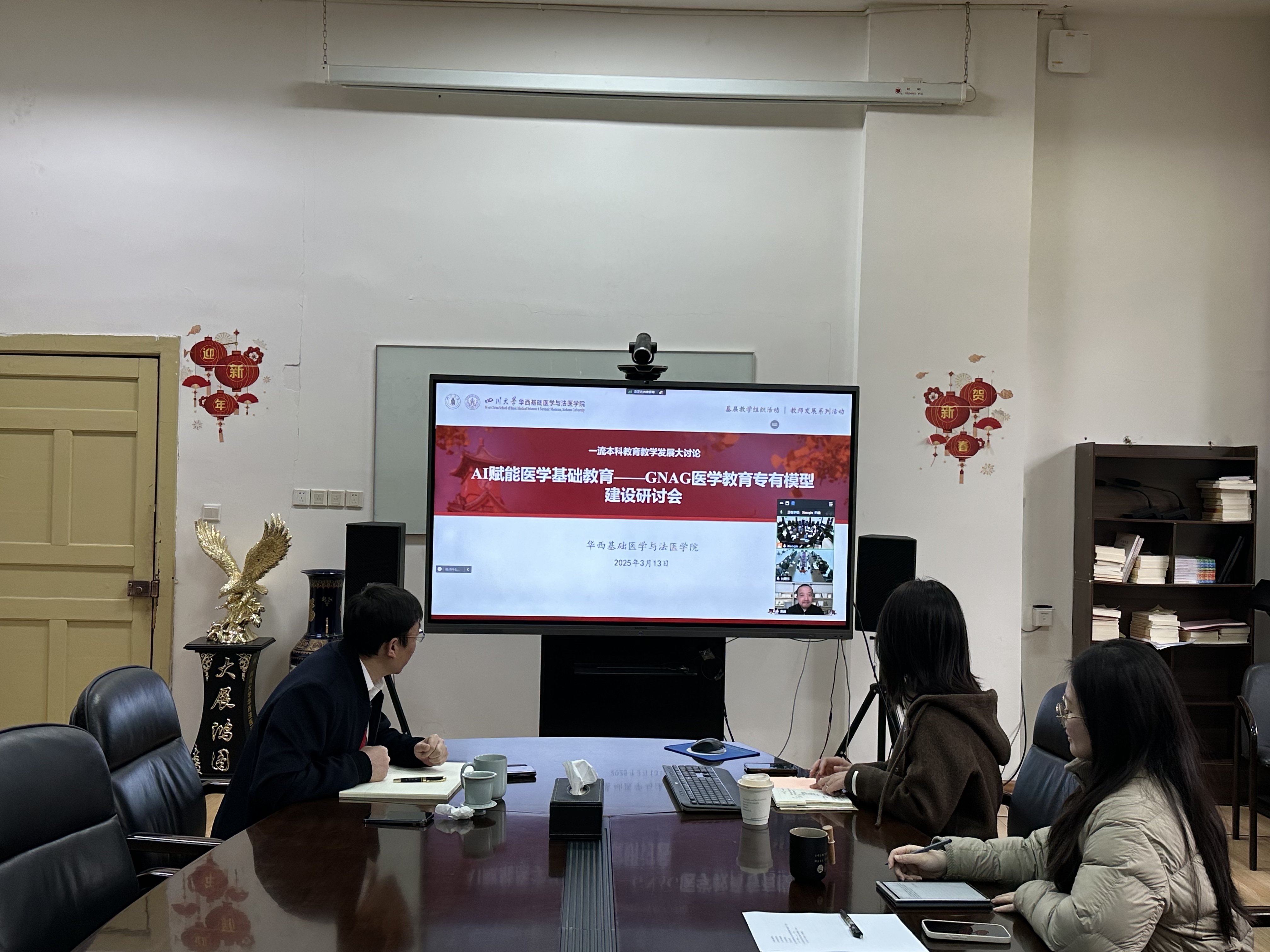 为深入贯彻落实学校AI深度赋能一流本科建设行动计划,永利官网梁伟波教授带领其教改项目团队于3月7日、3月11日、3月13日举行了“AI赋能医学基础教育——GNAG医学教育专有模型建设”系列研讨会。会议由教学副院长梁伟波教授主持,教学科全体成员参与,并分别邀请了院内各学科的教师代表、川北医学院基础医学相关课程负责人、成都泰盟软件有限公司的研发团队以及电子科技大学计算机科学与工程学院的宋超副教授共同研讨。