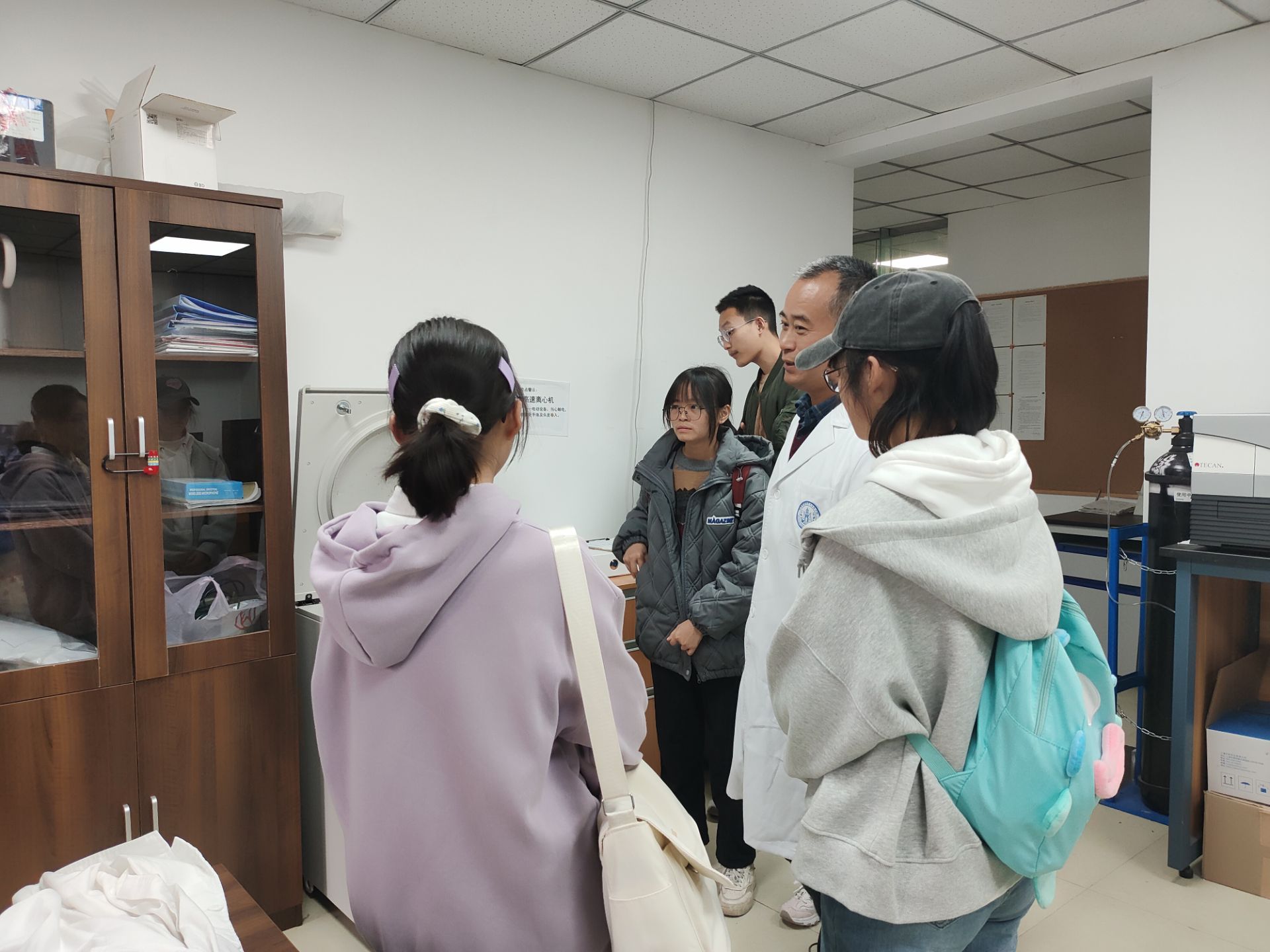 同学们先后参观了法医物证实验室、法医毒物分析实验室、公共实验平台、病原微生物实验室。硕士研究生单甜甜同学讲解了法医物证的定义、分类以及DNA检验常用仪器、一般流程等。叶懿老师以实际案例出发,为同学们介绍了法医毒物分析的内容、常用检验手段。张金虎老师带领大家参观公共实验平台,介绍了分光光度计、流式细胞仪等仪器,同时强调了实验室安全的重要性。病原微生物实验室则由硕士研究生刘人捷同学带领参观,他简述了抗生素研究的发展进程,还向同学们展示了自己培养的细胞在显微镜下的状态。
