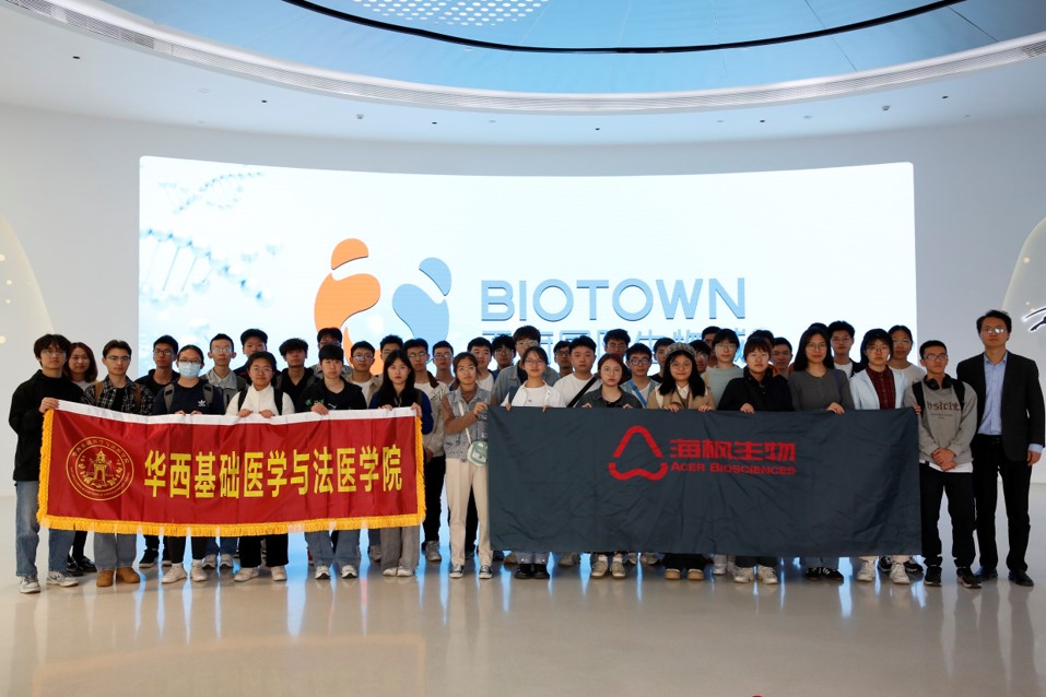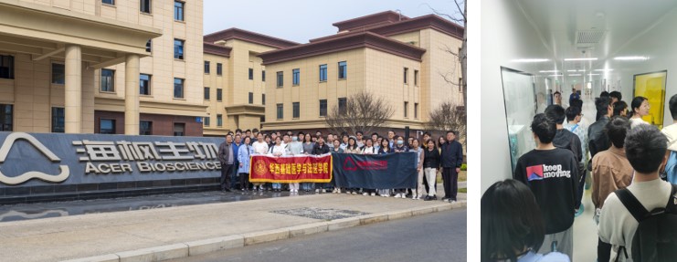 在生物城海枫生物园区,其主要创始人于源、蔡邵辉等老师早早地等候同学们到来,对永利官网同学们表示了热烈的欢迎。他们介绍了公司创立的初衷与目标,希望同学们能在此次参观中有所获、有所得。在研究人员的带领下,同学们参观了在园区内部的一站式实验基地,与实验室人员互动交流,深入感受一流的实验环境与先进医学设备,了解了医学“新质生产力”如何为医学产业未来赋能。