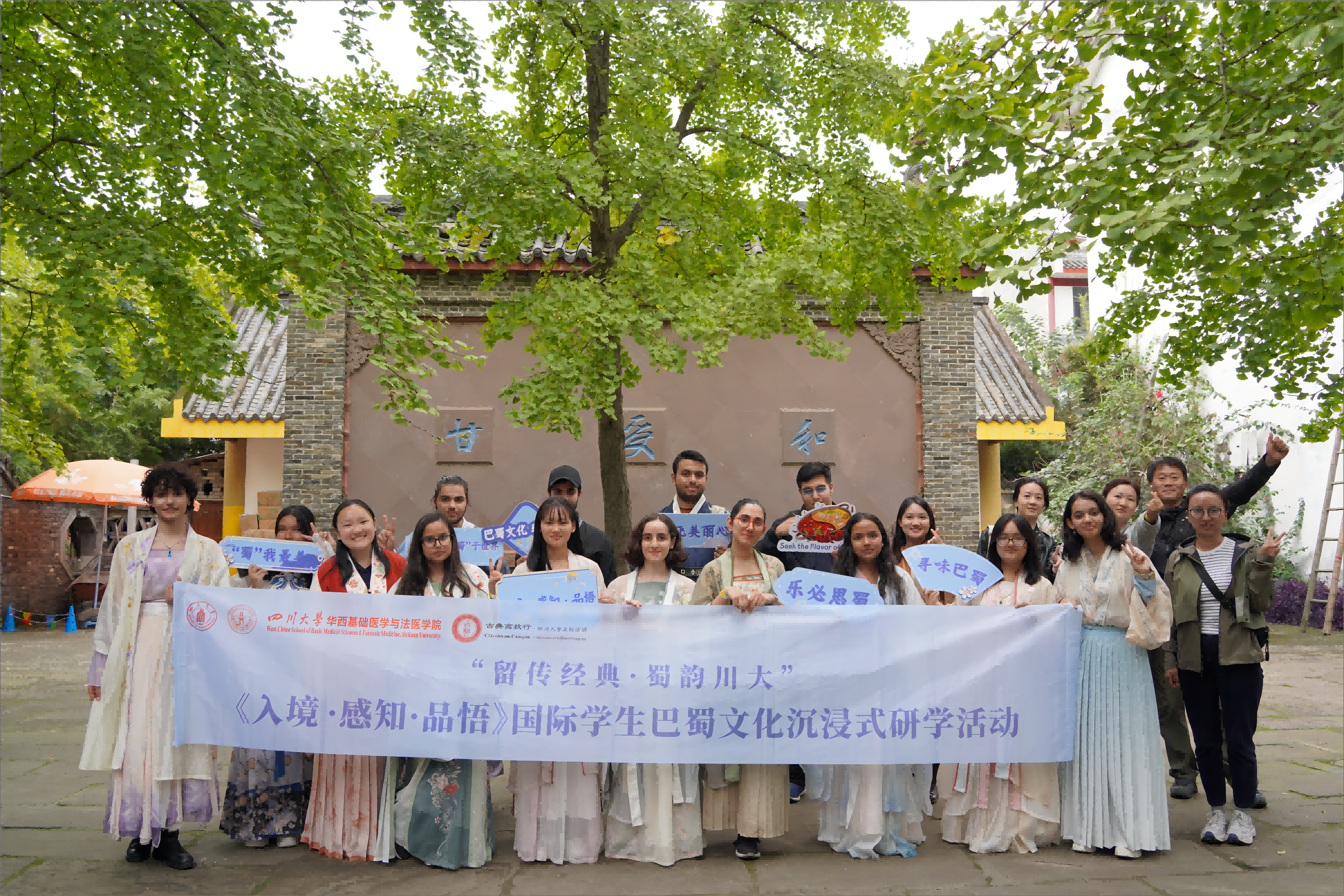 为增强中华文明传播力、影响力,深化国际交流、推动文明互鉴,由永利3544am登录官网留学生管理办公室“留传经典·蜀韵川大”精品培育项目资助立项,永利3544am登录官网留学生管理办公室与华西基础医学永利3544am登录官网共同主办的“入境·感知·品悟——国际学生巴蜀文化沉浸式研学活动”于2024年10月22日下午在成都市郫都区古城镇举行。在指导老师的带领下,14名来自不同国家的永利3544am登录官网留学生开启了巴蜀文化体验之旅。