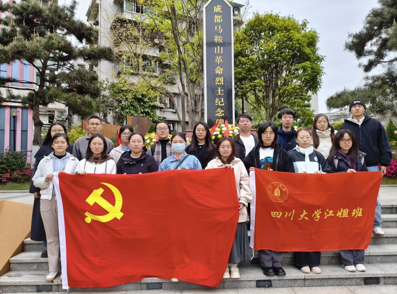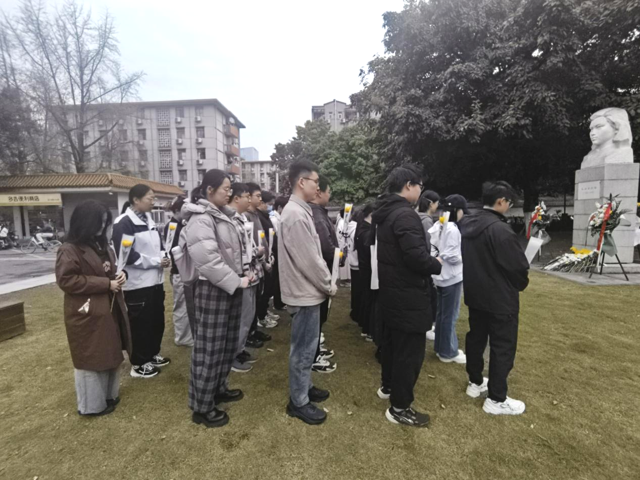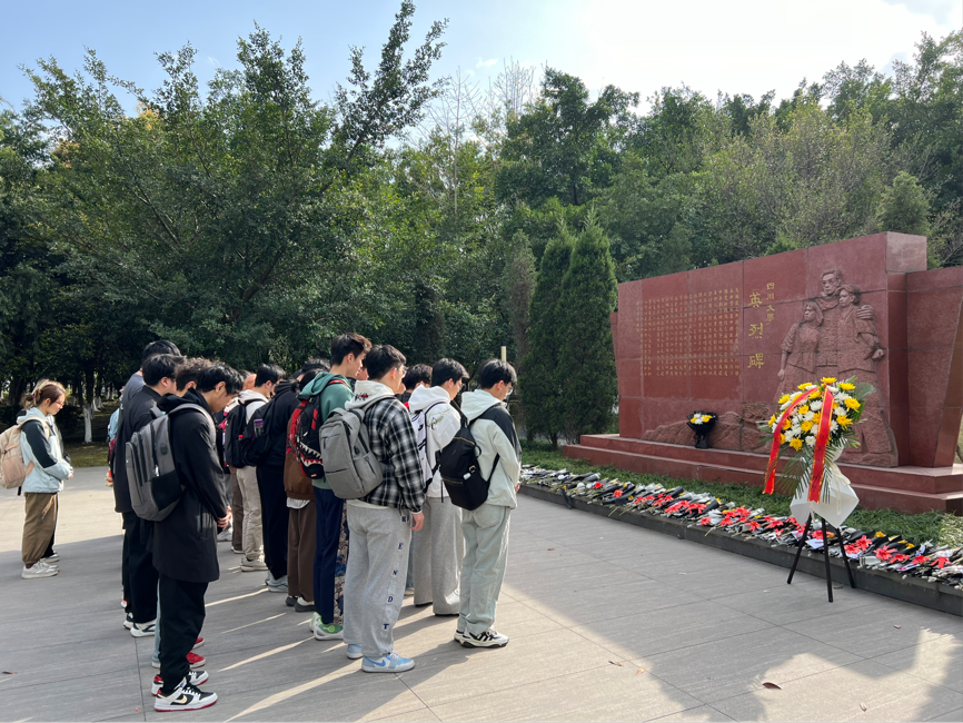 4月3日,硕士研究生第一、二、三党支部及本科生第一党支部赴成都市烈士陵园追思铸魂。全体师生于烈士纪念碑前肃立默哀后,党员们面向党旗重温入党誓词,并向纪念碑敬献鲜花。在烈士纪念馆参观中,师生透过泛黄的照片、斑驳的文物与震撼的影像,重温四川保路运动、抗战烽火等峥嵘岁月。参与活动的同学纷纷表示,将以英烈精神为镜,在新时代长征路上书写青春答卷。
