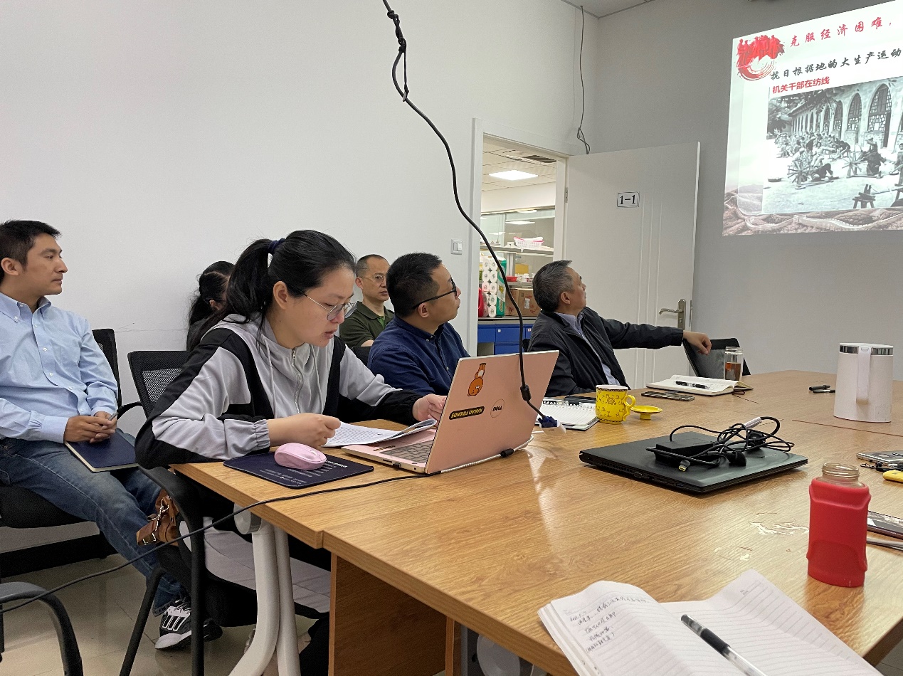 成姝婷老师选取1941年至1943年中国敌后抗战时期为背景,声情并茂地讲述了我党克服严重困难、建设并巩固抗日民主根据地的历史,在场的参会党员们深刻领悟了我党党员先烈在面对艰难困苦时坚韧不拔的毅力和以毛泽东为代表的中共中央实事求是、解放思想、自力更生的创造精神。这种创造精神在当时的严苛环境里给与了中国绝地求生的希望,在经历了无数共产党人的实践后,逐渐形成了我们所熟知的延安精神。这是红色革命精神之一,是中国共产党创造的一种革命精神。延安精神教会了我们实事求是、理论联系实际的精神、全心全意为人民服务的精神和自力更生艰苦奋斗的精神。党员老师们为此深受感动,大家积极发言,热烈讨论。李昌龙书记对本次的活动进行了点评,指出了优点和不足,并对在座的党员同志发出殷切的期望,希望大家牢记延安精神,并在实际的生活工作中发扬延安精神,为学院和学校的发展再创辉煌。