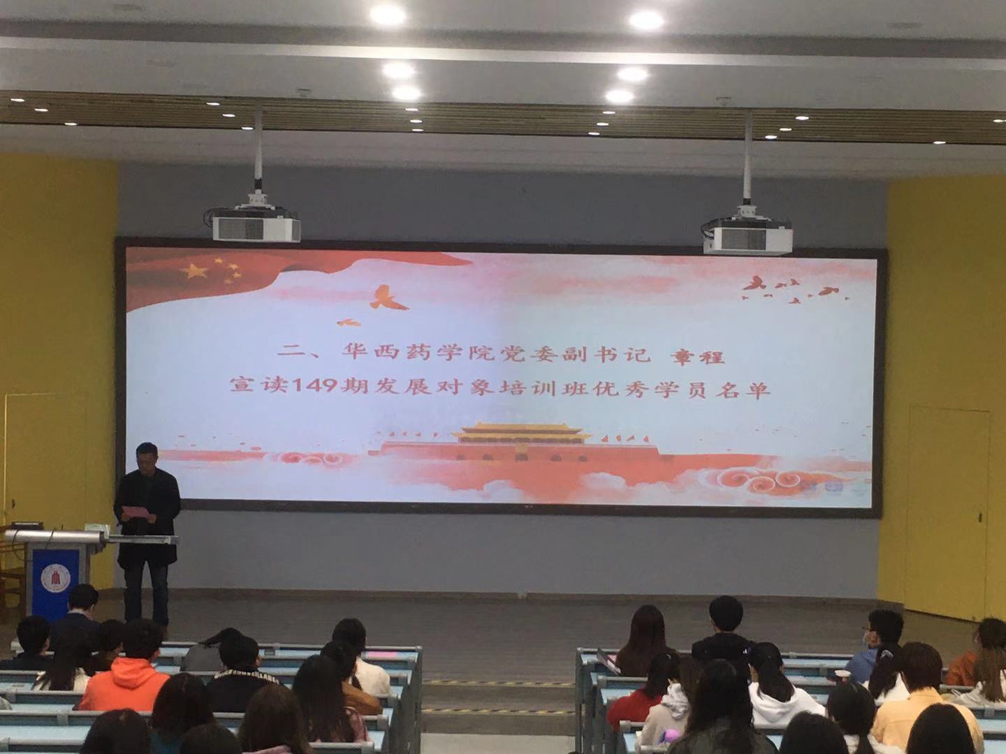 华西药学院党委副书记章程宣读了第149期发展对象培训班优秀学员名单,共18位同学获得“优秀学员”称号。 华西基础医学永利3544am登录官网郑亚子、华西口腔医学院梁羽童、华西药学院郝欣岩三位学员分别结合自身实际以及参加此次培训班的学习体会和成果,作了交流发言。他们一致表示,将深刻领会、贯彻落实发展对象培训班的学习成果,在今后的学习和工作中,发挥好先锋模范作用,以实际行动积极向党组织靠拢,争取早日加入中国共产党。