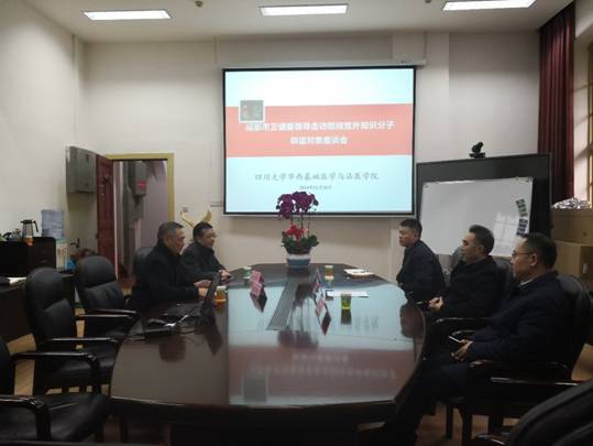 慰问开始,学院党委书记李昌龙就学院历史沿革、专业构成、学科发展、统战工作等向市卫健委一行做了详细介绍。随后,副院长方定志衷心感谢市卫健委的关心,汇报了工作分工、生活等方面工作,希望与市卫健委及所属单位加强合作。谢强书记详细介绍了成都市卫健委党外知识分子联谊情况,对市卫健委及所属单位与永利官网的合作工作作出了重要指示。