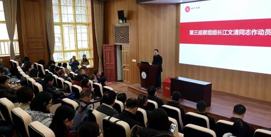 第三巡察组组长江文清同志作动员部署讲话,提出三点意见。一是认真学习领会把握精神要义,做到思想和行动统一到中央、教育部和学校对巡察工作的决策部署上来。二是突出巡察重点,明确工作任务,坚决贯彻落实政治巡察各项要求。三是依规依纪开展巡察,加强组织协调,切实保证巡察工作扎实有序推进。会上,他还就巡察工作安排和信访渠道等情况作了说明。