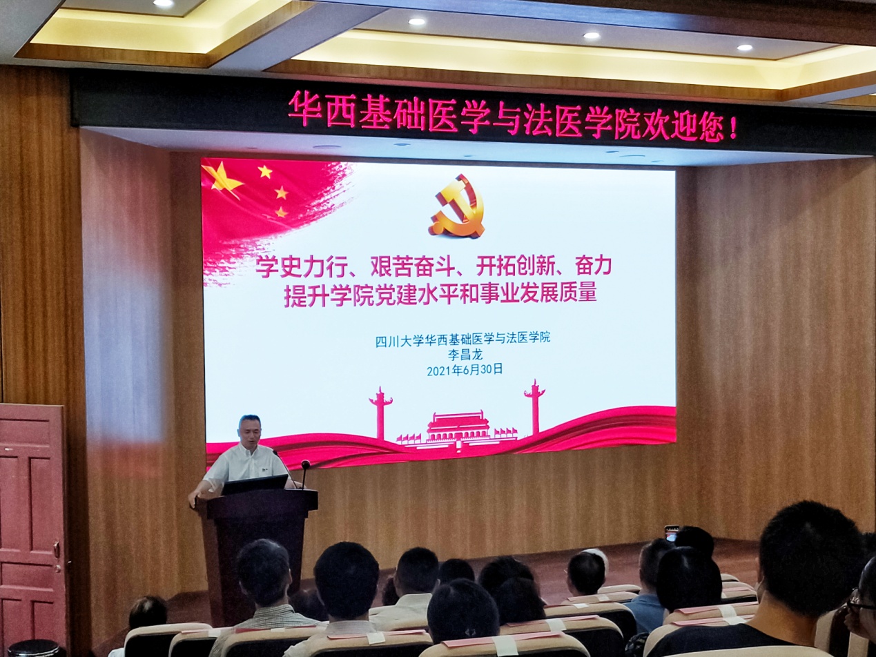 “百年征程波澜壮阔,百年初心历久弥坚”。6月30日下午,永利3544am登录官网华西基础医学永利3544am登录官网庆祝中国共产党成立100周年暨2021年“两优一先”表彰大会在华西校区五教报告厅隆重召开。大会由学院副书记、纪委书记郭晓伟主持,学院党委委员、纪委委员、全体师生党员、退休党员代表等一百余人参加了会议。学校党史学习教育第三指导小组成员、学校巡察办专职副主任李玉峰到会指导。