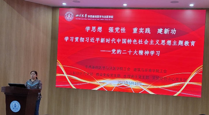 5月19日,学院工会与建筑与环境学院工会联合永利官网人解组胚党支部、感染免疫党支部、生理病生党支部和实验动物中心党支部在华西五教报告厅开展学习贯彻习近平新时代中国特色社会主义思想主题教育,深刻领悟“两个确立”的决定性意义。活动分为专家辅导讲座和党的二十大知识竞赛两个部分,学院党委书记李华、60余名党员及教职工参加本次活动。