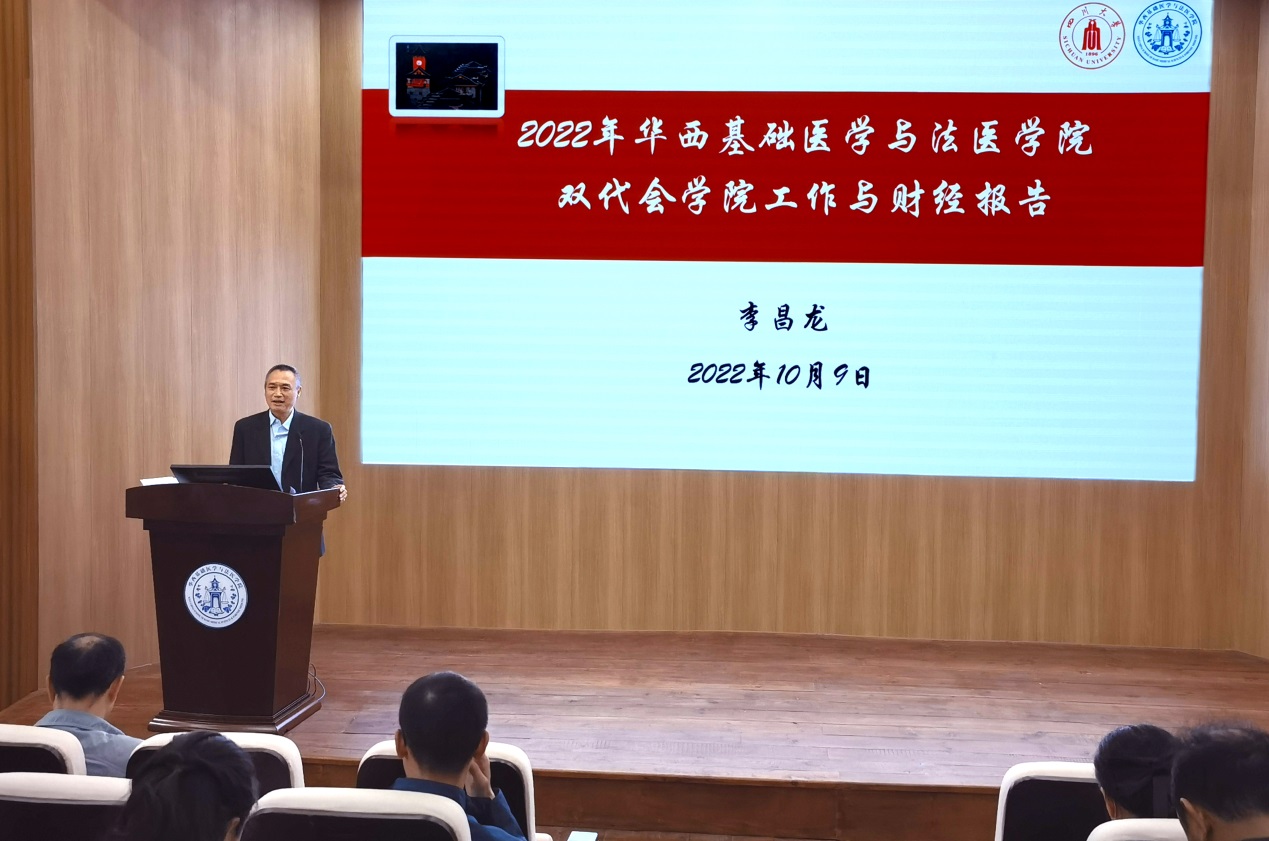 院长李昌龙向大会作2022年学院工作报告和财经报告。在工作报告中,院长李昌龙全面总结了学院在党建、师资队伍、人才培养、科学研究、条件建设和后勤保障、疫情防控等方面的工作,部署了学院近期重点推进学习贯彻落实党的二十大精神,加强师资培育、人才培养和学科平台建设,积极组织参与各类竞赛,做好实验动物中心与学院协同发展,优化绩效考核,保障安全稳定等工作。他希望学院全体教职工凝心聚力,始终坚持党的全面领导,始终坚守立德树人初心使命,按照学校第九次党代会的会议精神,认真落实学校党代会部署的思路举措,以办最好的医科为宗旨,对标学院“十四五”目标,团结奋斗,锐意进取,扎实推进永利官网各项工作。李昌龙院长还就学院2022年财经工作情况向大会做了详细的汇报。