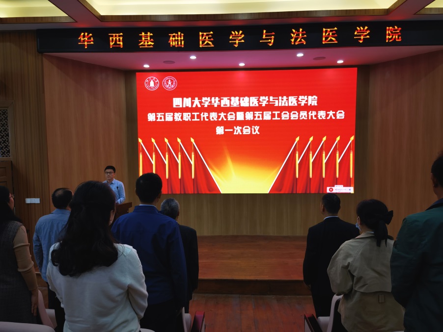 2022年10月9日下午,学院第五届教职工代表大会暨第五届工会会员代表大会第一次会议在华西五教报告厅隆重召开。永利3544am登录官网工会常务副主席袁斌、副主席冷泠、院长李昌龙、党委副书记陈维操、副院长刘肖珩、梁伟波、张舒羽、罗海玻以及学院双代会正式代表、特邀代表及列席代表近40人参加了会议。会议由大会执行主席党委副书记陈维操主持。