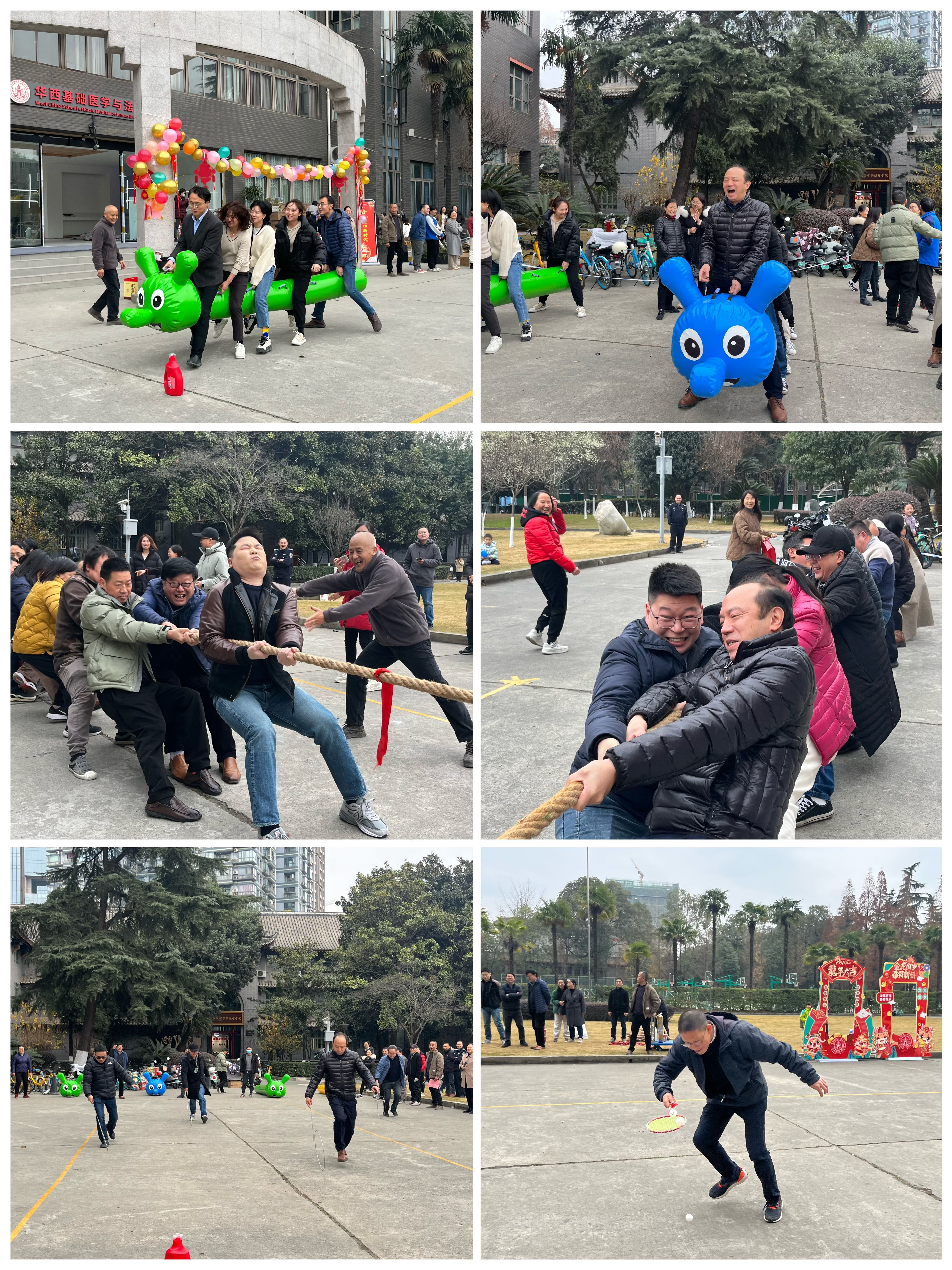 在春节即将来临之际,为丰富教职工的节日生活,增强团队凝聚力,永利官网于1月19日下午在华西校区逸夫楼前成功举办迎新春趣味运动会。此次活动旨在以轻松、有趣的方式迎接新春佳节的到来,同时促进教职工之间的交流与合作。