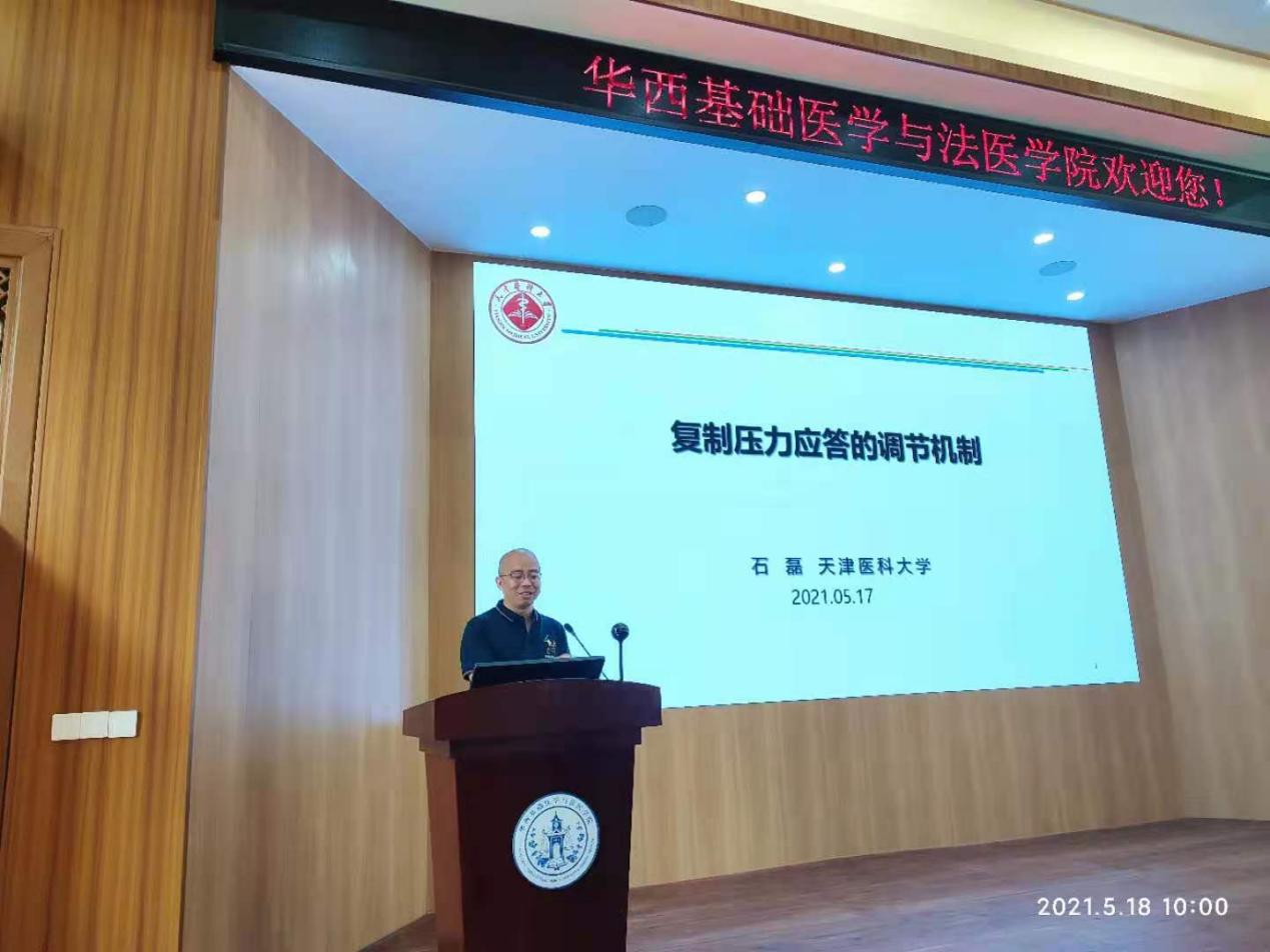 2021年5月18日上午10:00,应永利官网邀请,天津医科大学基础医学卓越研究中心石磊教授在华西校区五教报告厅做了题为“复制压力应答的调节机制”的学术报告。