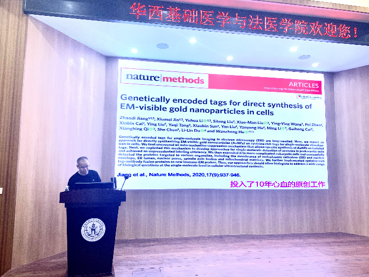 应永利官网邀请,2020年11月24日上午10:00,北京生命科学研究所研究员何万中教授在华西校区五教报告厅做了题为“可克隆电镜标记技术实现细胞超微结构的单分子水平定位”的学术报告。