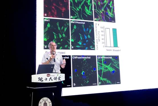 Peter Illes院士首先简单介绍了嘌呤信号受体的家族成员及其功能;随后讲述了他实验室关于成年神经祖细胞的相关研究结果,他们发现成年神经祖细胞中存在有功能的嘌呤信号受体,这些受体的激活参与了神经祖细胞的增殖、迁移、分化以及凋亡等生理过程,他们进一步证明了嘌呤信号受体P2X7诱发脑室下区的神经祖细胞的坏死或凋亡。之后Peter Illes院士重点阐述了癫痫持续状态下嘌呤信号的功能,他们发现毛果芸香碱或红藻氨酸诱发的癫痫持续状态上调神经祖细胞中的嘌呤信号受体P2Y1和P2X7的功能,P2Y1的激活增加神经祖细胞的增殖和迁移,而P2X7导致神经祖细胞凋亡从而限制神经祖细胞的病理性增殖。最后,Peter Illes院士还介绍了用4-氨基吡啶处理体外培养的海马脑片可以模拟癫痫持续状态,在此过程中DG神经元释放大量的ATP作用于神经祖细胞,为深入研究癫痫提供了很好的模型和角度。