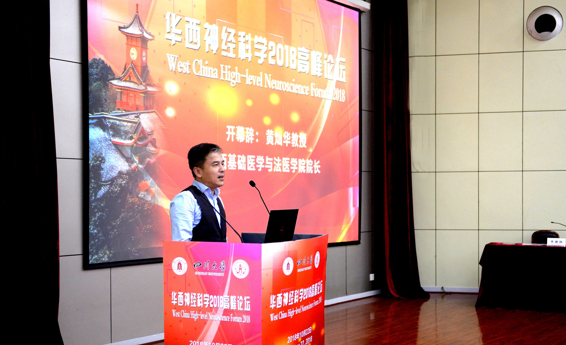 10月22日,华西神经科学2018高峰论坛在华西校区逸夫基础医学楼学术报告厅隆重举行。本次论坛邀请了来自北京大学、复旦大学、中山大学、空军军医大学、陆军军医大学、苏州大学、中科院武汉物理数学研究所、永利3544am登录官网的9位神经科学领域的知名专家作大会报告。校内师生200余人参加了本次论坛。四川省解剖学会理事长、学院组织胚胎学与神经生物学教研室齐建国教授作为本次论坛的召集人主持开幕式。