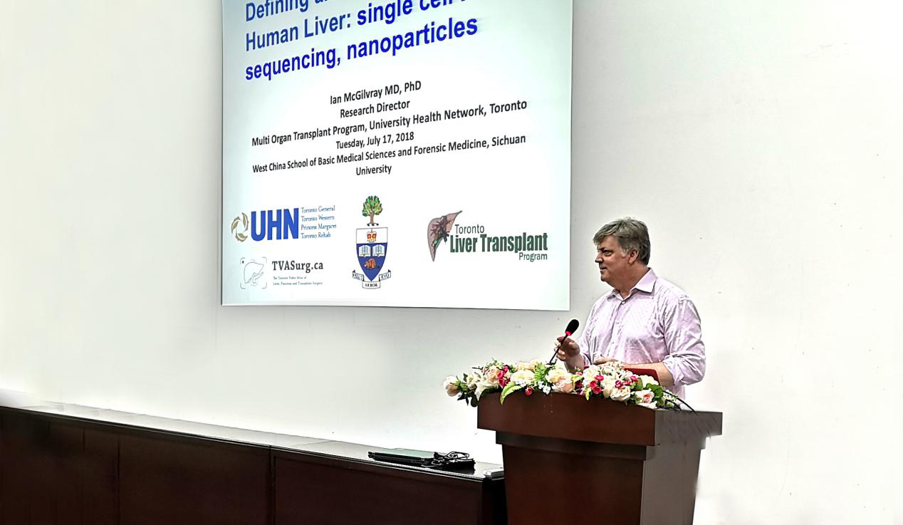 7月17日下午,应学院的邀请,多伦多大学的McGilvray, Ian教授来永利官网进行学术交流,为到场的师生带来了题为“Defining and Targeting the Human Liver: Single cell RNA sequencing and nanoparticles”的学术报告。报告在华西第五教学楼报告厅举行,由刘肖珩教授主持。