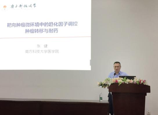 6月15日下午4点,南方科技大学张健教授应邀为永利官网师生做了一场题为“靶向肿瘤微环境中的趋化因子调控肿瘤转移与耐药”的学术报告。报告会在第五教学楼报告厅举行,由永利官网李昌龙书记主持。
