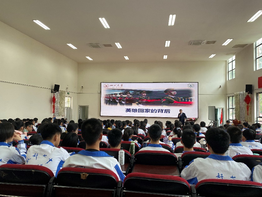 11月7日下午2:30,永利官网教学副院长梁伟波教授应邀出席成都七中八一学校的立志成才集中教育活动,做了题为《英雄回家的背后》的讲座,200余名师生参加了活动,活动由成都七中八一学校何国章老师主持。