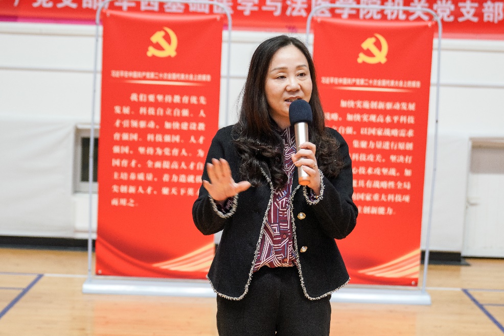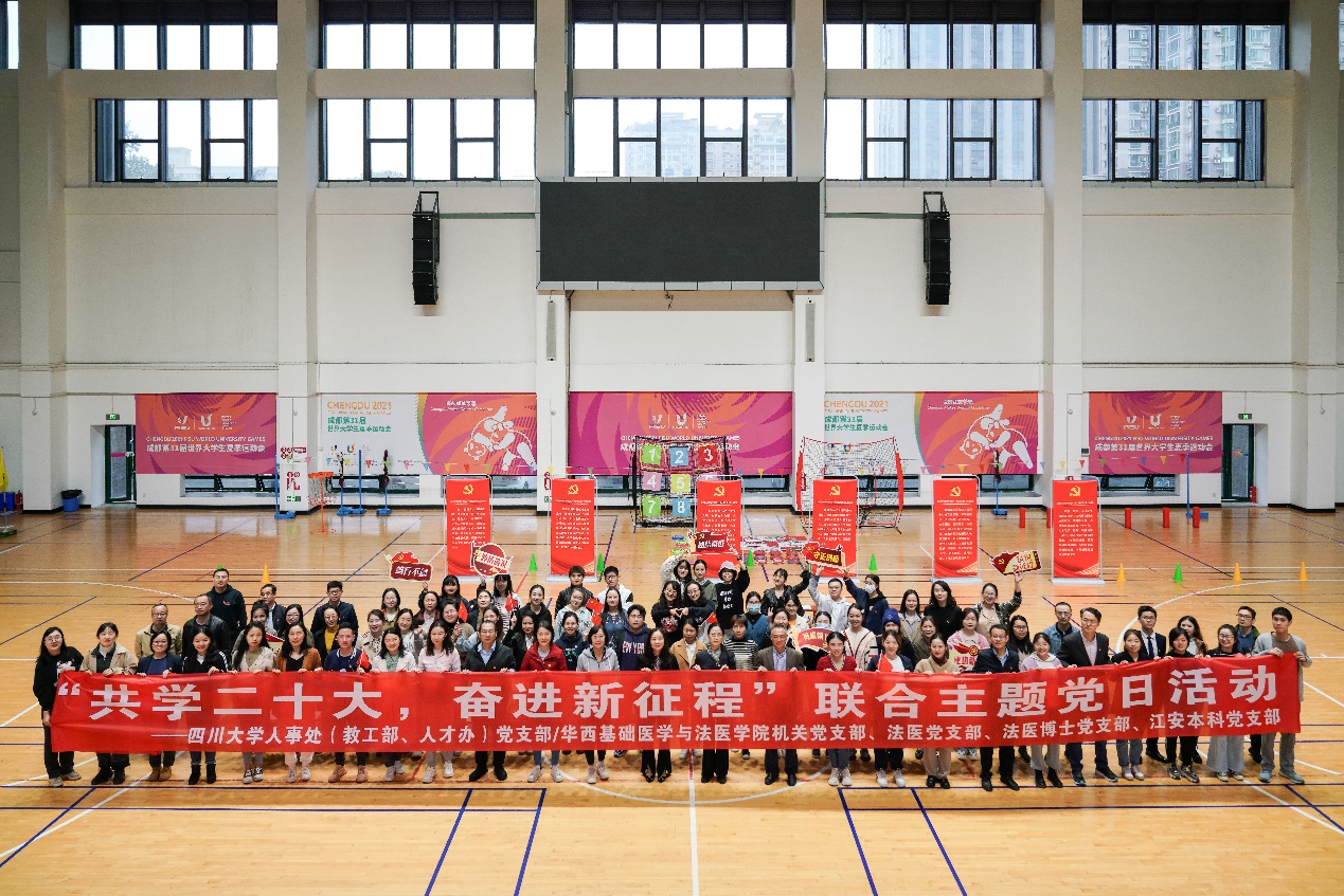 为深入学习贯彻党的二十大精神,感悟时代新成就,奋进发展新征程,10月28日下午,学院机关党支部、法医党支部、法医博士党支部、江安党支部与学校人事处(教工部、人才办)党支部在华西校区室内运动场开展“共学二十大 奋进新征程”联合主题党日暨拓展训练活动,人事处(教工部、人才办)党支部,学院机关党支部、法医党支部、法医博士党支部、江安党支部80余名党员参加。人事处(教工部、人才办)党支部书记、处长(党委教师工作部部长)吴尧、人才工作办公室主任杨伟、人才交流中心主任王茂华、党委教师工作部副部长马涛、人才工作办公室副主任刘丸源,学院党委书记李华、院长李昌龙、副书记陈维操出席活动。