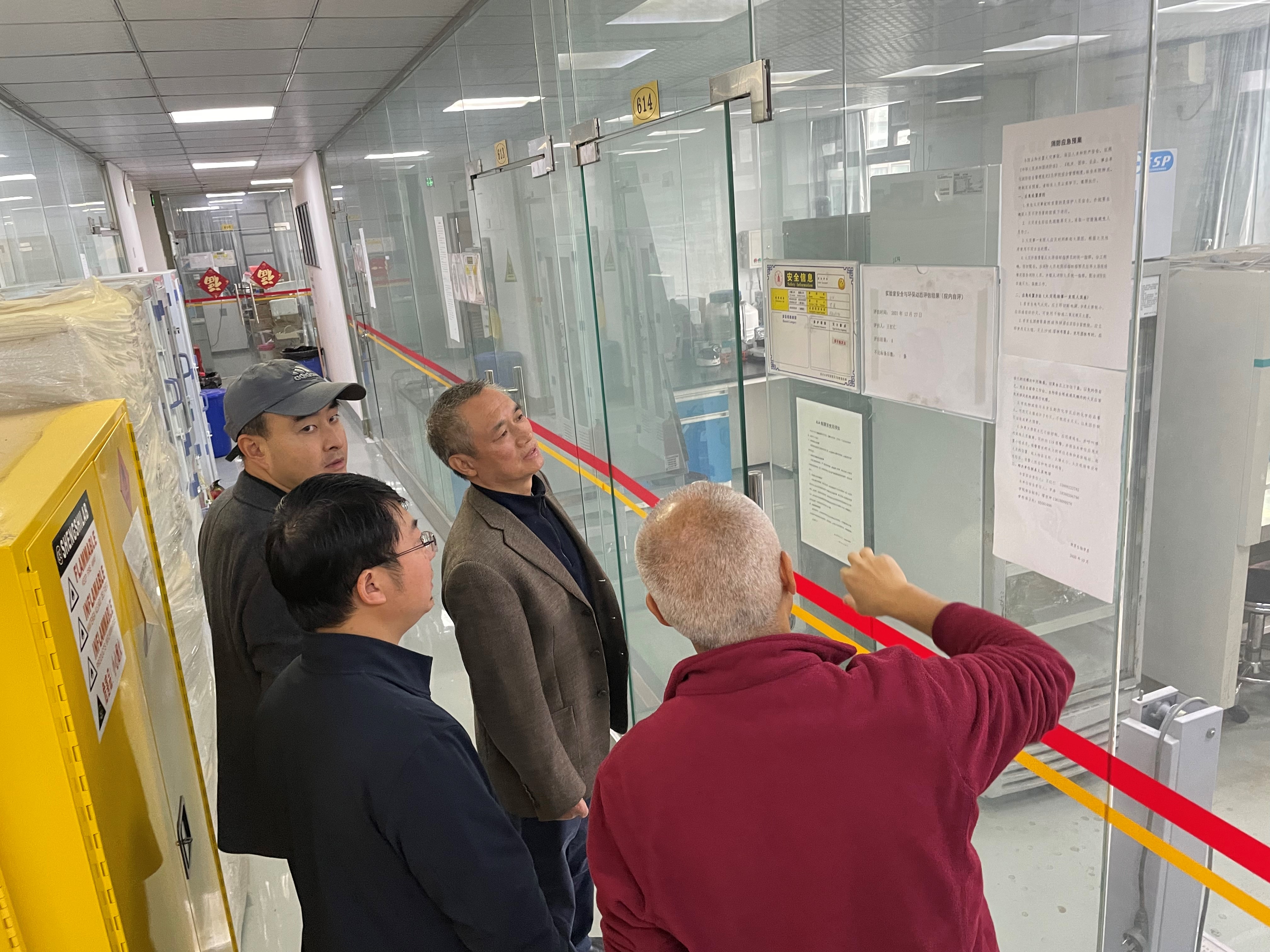 李院长一行查看实验室安全信息牌和规章制度上墙的情况