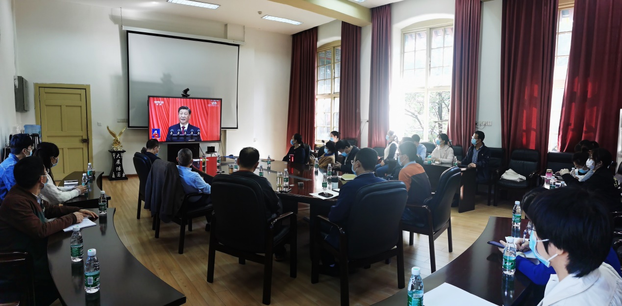 永利官网全体在家院领导、两委委员、党支部书记、师生代表30余人在华西第五教学楼二会议室集中收看了大会直播盛况,其他师生员工在学院党支部、二级单位、团委的组织下采用电视、广播、网络、手机客户端等多种形式积极踊跃收看收听直播,认真学习讨论党的二十大报告。