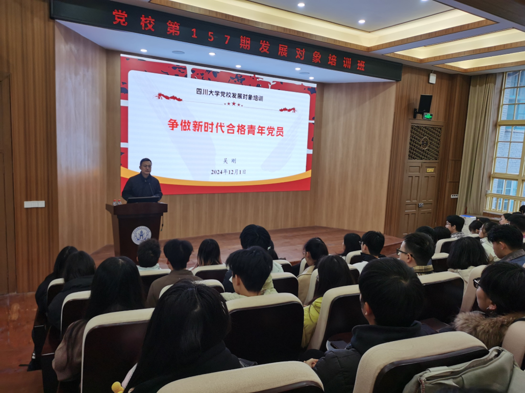 2024年12月1日,由华西基础医学永利3544am登录官网、华西口腔医学院、华西药学院、华西公共卫生学院联合举办的永利3544am登录官网二级党校第157期党校发展对象培训班开班典礼在华西第五教学楼报告厅举行。永利3544am登录官网水利水电学院党委书记吴刚、华西基础医学永利3544am登录官网党委副书记兼纪委书记、副院长罗海玻,党校指导教师郑风劲、陈蕾蕾、蔡明婧、高金霞、吕蓉以及144名发展对象参加开班典礼。