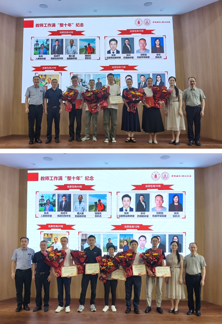 回首成长路,展望新征程。大会表彰了工作“整十年”的教师,李华宣读名单,李昌龙为受表彰的老师们颁发证书,送上鲜花,感谢他们为学院发展做出的贡献。