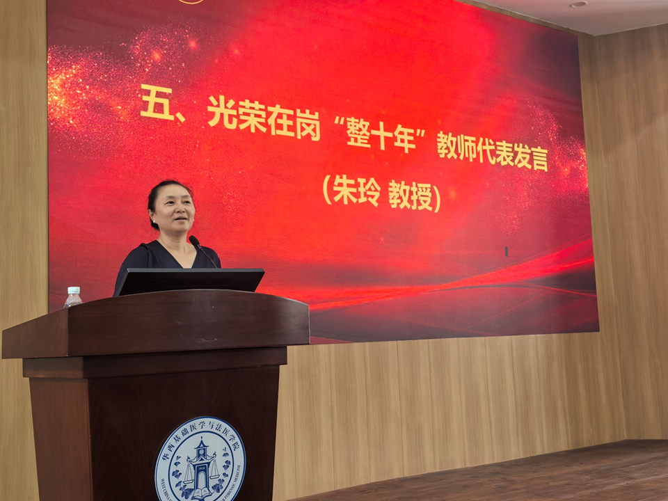 从教三十载,潜心教学育新人。会上学院邀请光荣在岗“整十年”教师代表朱玲教授发言。她表示,作为一名教师,以教书育人为本,以课程建设为要,铭记前辈教导,兢兢业业,努力奋斗,将继续在自己平凡的岗位上发光发热。